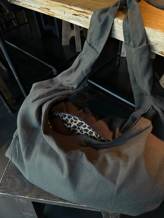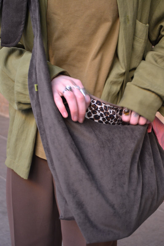 Microvelvet slim-bag dark brown colour and leopard-print lining inside