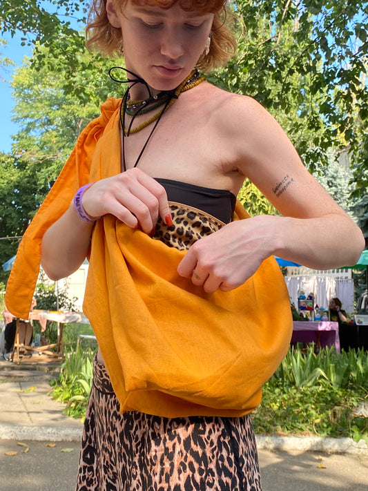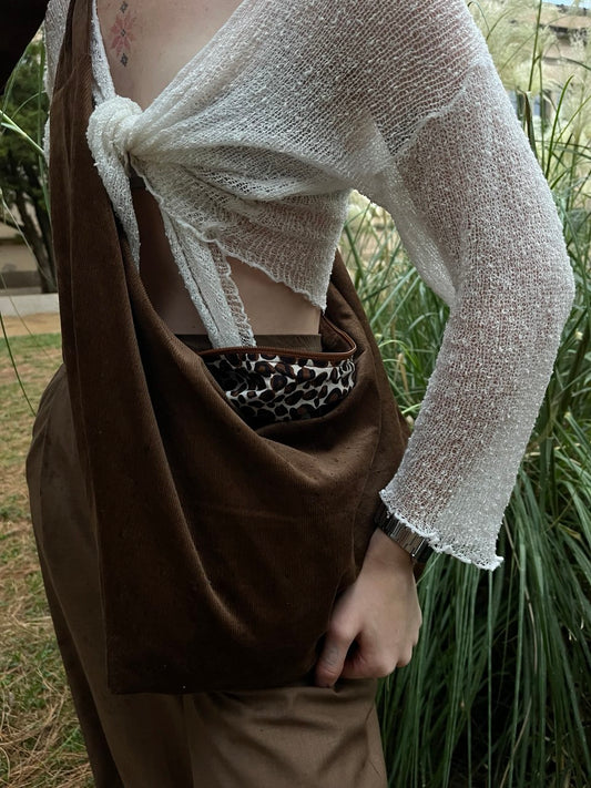 Microvelvet slim-bag bright brown colour and leopard-print lining inside