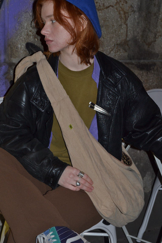 Microvelvet slim-bag beige colour and leopard-print lining inside